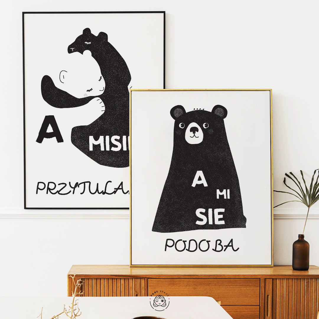Plakat z misiami autorstwa Pauliny w formatach 30x40 cm oraz 40x50 cm.