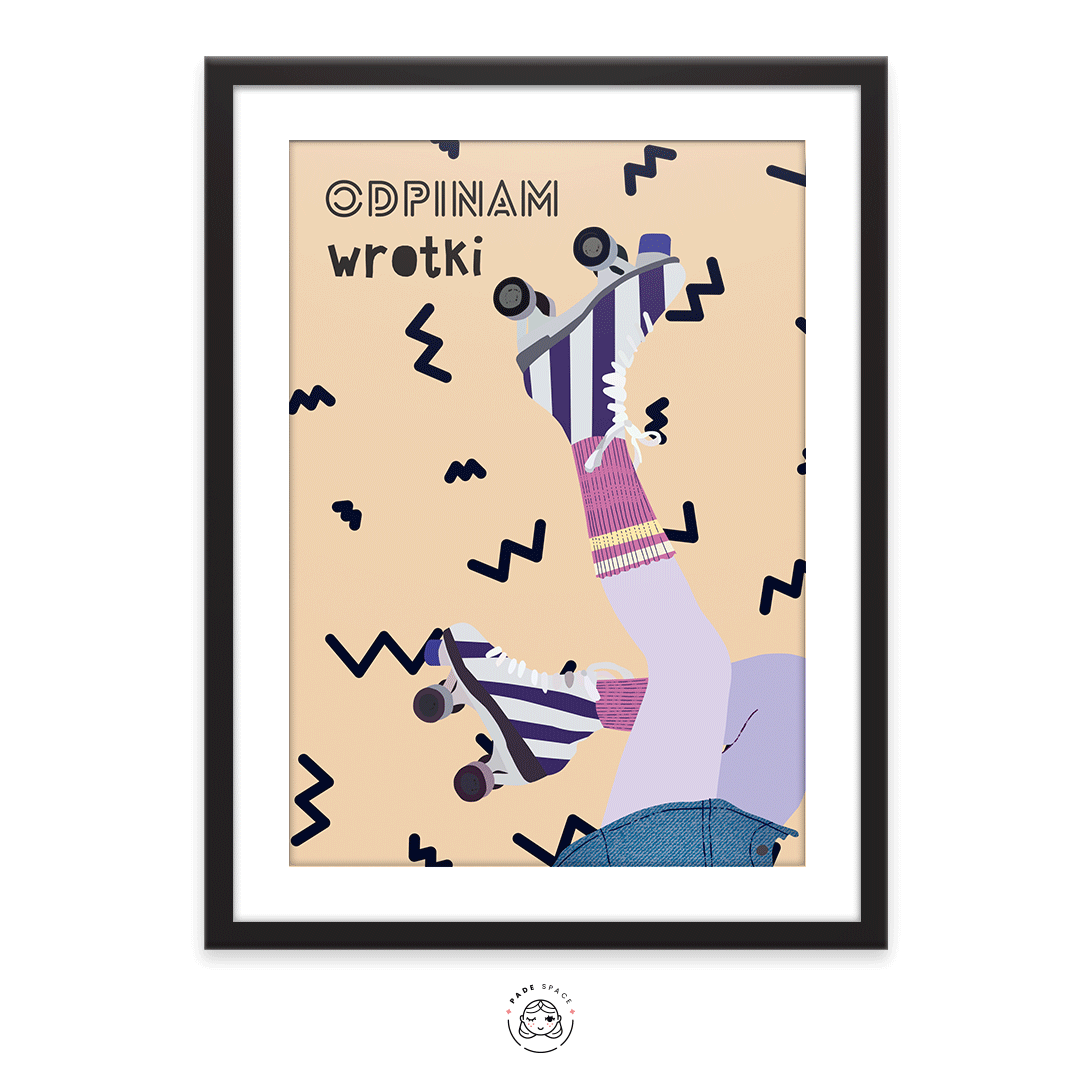 Plakat z hasłem wrotkowym autorstwa Pauliny w formatach 30x40 cm, 40x50 cm oraz 50x70 cm.
