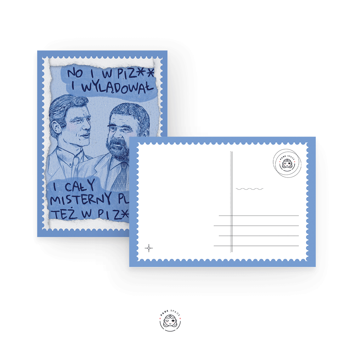 Pocztówka filmowa z cytatem z filmu Kiler-ów 2-óch z postaciami Stefana "Siary" Siarzewskiego i Wąskiego.